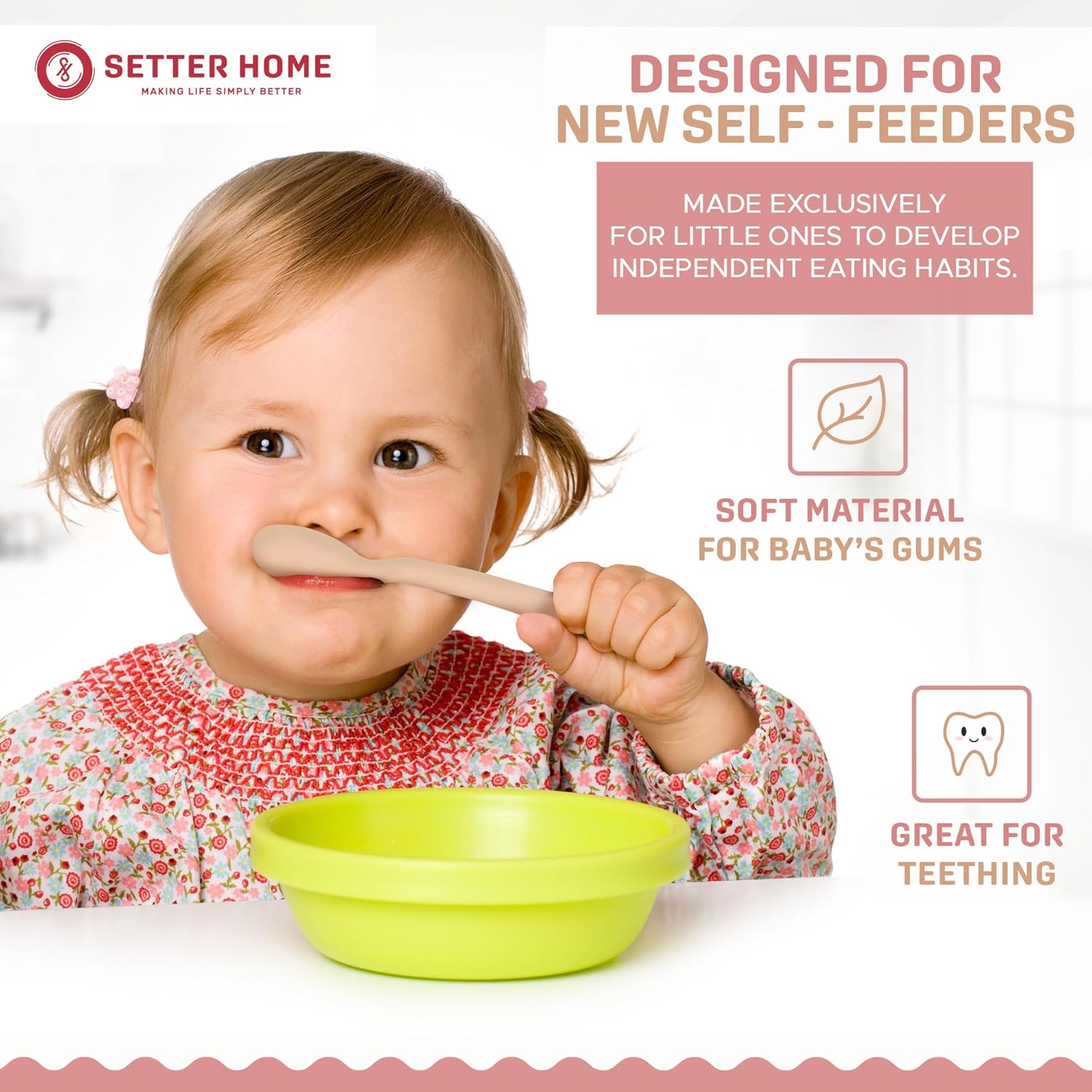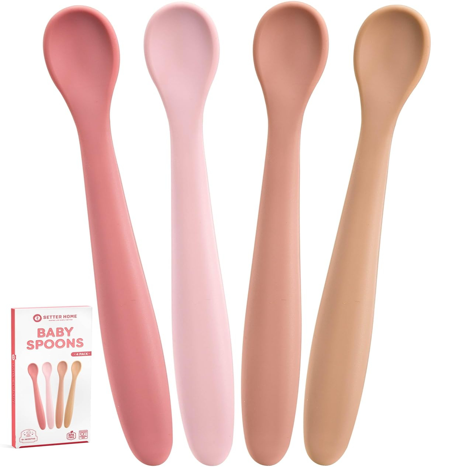 2. Introduce your baby to solids with our infant first stage silicone training spoon. The soft colors and matte finish make these spoons both stylish and practical. Made from BPA-free silicone, these spoons are gentle on your baby's gums and easy to grip.