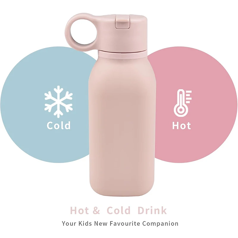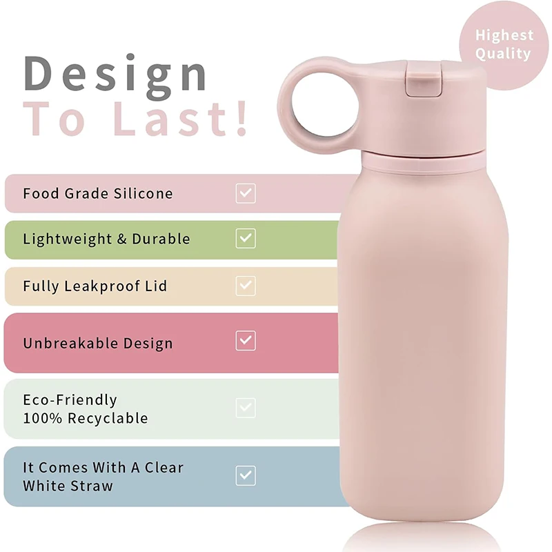Food Grade Silicone Bottle With Straw Children Portable Reusable Plastic Cups Outdoor Travel Cold/Hot Water Drinking Bottle