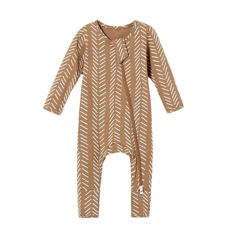 Spring/Summer/Autumn Newborn Romper - Organic Cotton Long-Sleeve Bodysuit with Side Zipper, Hand-Foot Covers
